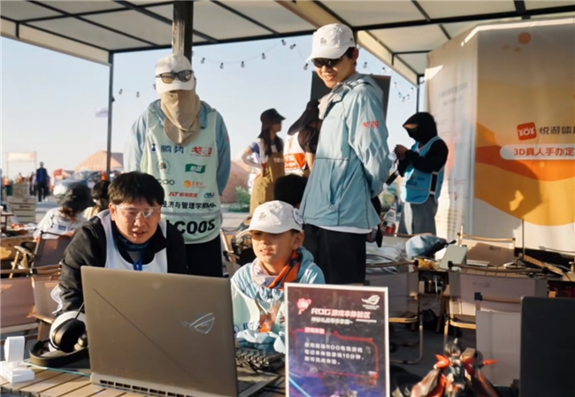 在营地,华硕设置四大功能区:ROG电竞体验区带来极致帧率的竞技体验; AI创作区借助ProArt创16将赛事瞬间转化为艺术作品;a豆充能区通过咖啡与AI互动为戈友补充能量。今年更是首次打造的"华硕星空影院",搭载华硕投影设备播放《玄奘之路》纪录片,让戈友在星空下重温玄奘精神,成为赛事期间备受好评的夜间活动。