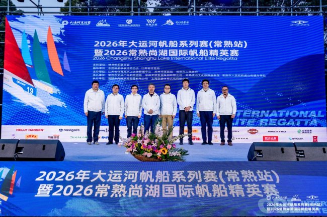 3月19日,2026年大运河帆船系列赛(常熟站)暨2026常熟尚湖国际帆船精英赛在江苏常熟正式开幕。赛事启动仪式上,世界帆船联合会主席李全海,常熟市人民政府副市长俞翔,中国帆船帆板运动协会副秘书长兼事业发展二部部长胡博,常熟文旅发展集团有限公司党委书记、董事长陈勇,江苏省体育局水上运动管理中心副主任孙卫,虞山街道党工委副书记、办事处主任许杰,常熟市文体广电和旅游局党组成员、副局长余阳,圆桌实业发展集团及上海亚瑟体育文化有限公司董事长蔡斌共同出席启动仪式。赛事将于3月20日至22日展开为期三天的正式竞赛,来自全球多个国家和地区的高水平赛队齐聚尚湖水域,共同开启新一轮国际帆船竞技。